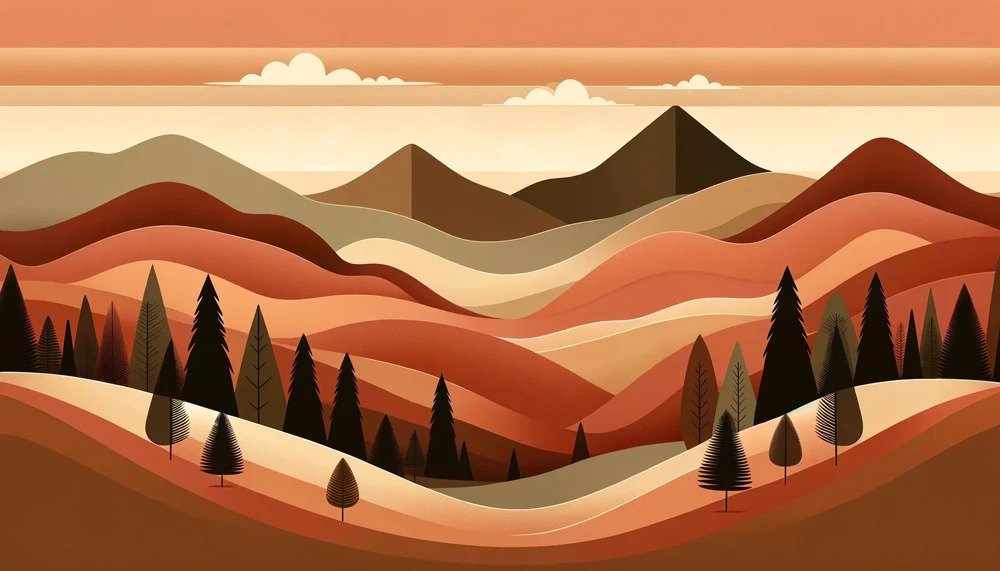 Sofisticado fotomural con paisaje montañoso y bosque de pinos en estilo geométrico vintage con paleta tierra.Seleccionar opciones Este producto tiene múltiples variantes. Las opciones se pueden elegir en la página de productoBosque Zorro Otoñal – Fotomural Infantil Suave