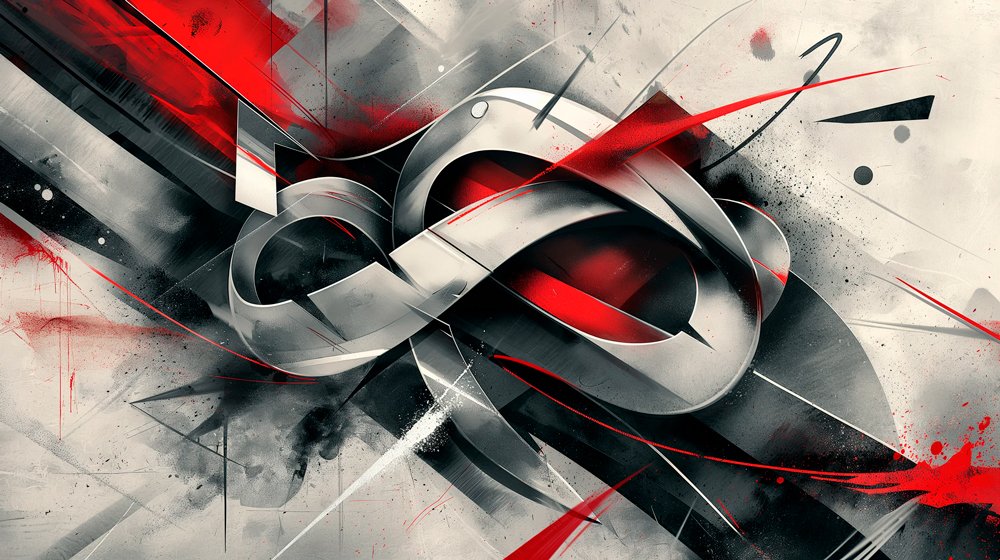 Diseño impactante de cintas metálicas tridimensionales que se entrelazan creando profundidad y movimiento. Tonos plateados con toques rojos sobre fondo industrial. Ideal para habitaciones juveniles modernas que buscan un look futurista y dinámico.