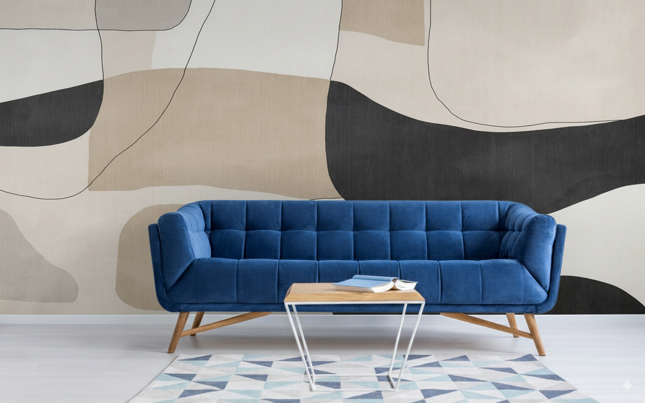 Este refinado fotomural presenta una composición abstracta de gran sutileza, donde formas orgánicas y curvilíneas se distribuyen armoniosamente creando un equilibrio visual perfecto. La paleta se basa en tonos neutros atemporales que incluyen beiges cálidos, grises suaves y negros profundos, todos unidos por delicadas líneas de contorno que definen y conectan las formas de manera elegante. Las superposiciones y transparencias generan diferentes planos visuales que aportan profundidad sin resultar complejas, mientras que las texturas mate añaden calidez y sofisticación al conjunto. Este diseño minimalista es ideal para espacios contemporáneos que busquen una presencia artística discreta pero impactante, perfecto para dormitorios principales, salas de estar modernas o espacios de trabajo que requieran un ambiente sereno y equilibrado que favorezca la concentración y el bienestar.