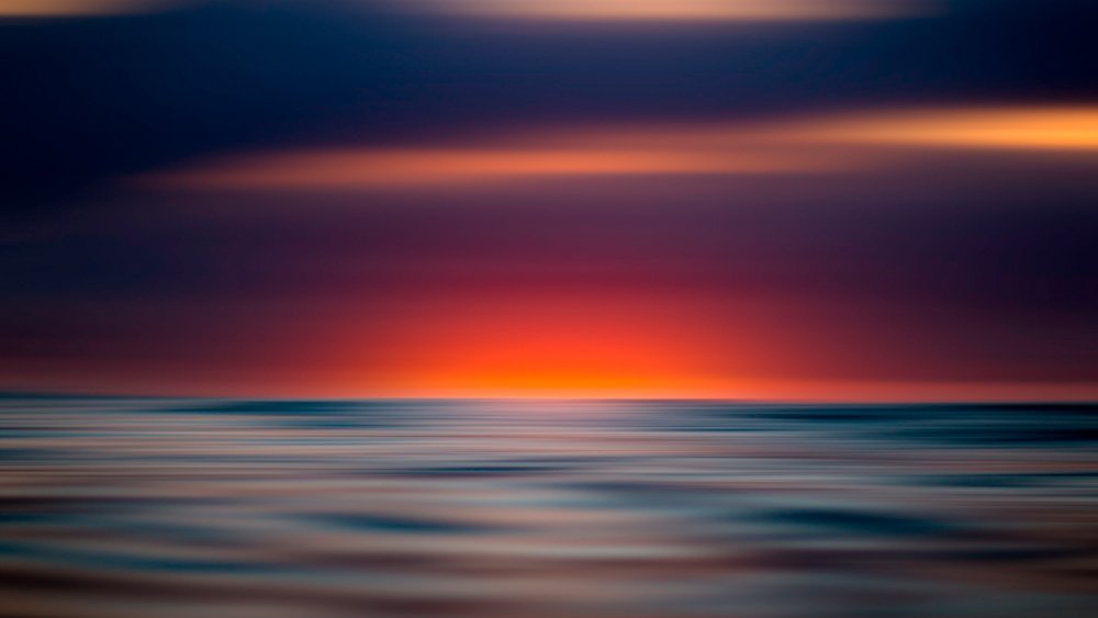 Esta cautivadora obra de arte fotográfico trasciende la representación tradicional del paisaje para adentrarse en el reino de la abstracción pura. Mediante la técnica de movimiento intencional de cámara (ICM) durante una larga exposición, el fotógrafo ha transformado un amanecer marino en una sinfonía visual de colores y texturas que fluyen como acuarelas líquidas.