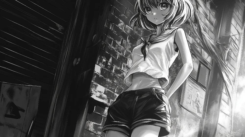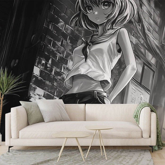 Diseño en blanco y negro con atmósfera de ciudad moderna y expresión contemplativa. Ideal para espacios juveniles que buscan conexión con la vida urbana y estilo minimalista elegante.