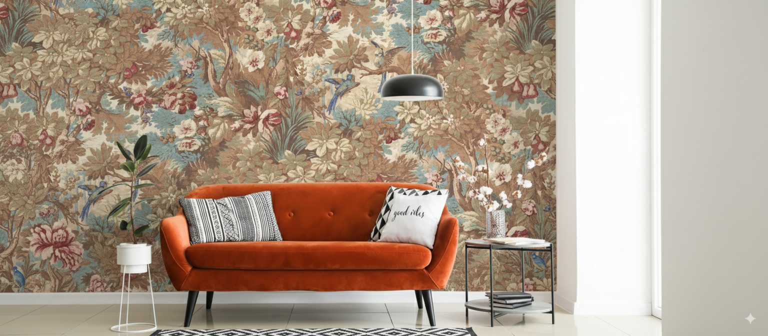 Este exquisito fotomural vintage transporta la elegancia de los jardines clásicos a tu hogar. Con un diseño que combina flores exuberantes en tonos rosados y blancos, hojas tropicales detalladas y delicadas aves azules, todo sobre un suave fondo celeste. La composición evoca el romanticismo de las ilustraciones botánicas del siglo XIX, creando una atmósfera sofisticada y natural. Perfecto para dormitorios principales, salas de estar o cualquier espacio donde desees crear un ambiente acogedor y refinado. La paleta de colores suaves permite una fácil integración con diferentes estilos decorativos, desde shabby chic hasta clásico contemporáneo.