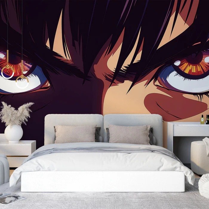 Composición única con perspectiva desde abajo y tonos púrpuras, naranjas y azules vibrantes. Ideal para crear ambiente místico y lleno de energía en espacios juveniles con personalidad artística.
