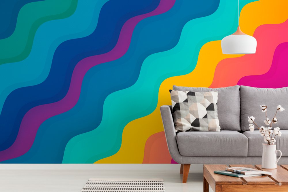 Fotomural abstracto con líneas onduladas que danzan a través de un espectro de tonos vívidos. Perfecto para elevar cualquier espacio, este diseño combina movimiento dinámico con una explosión de color, ideal para ambientes modernos.