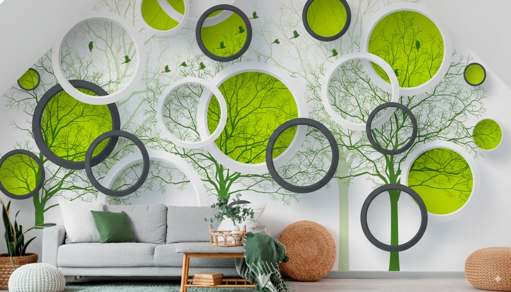 Este fotomural fusiona elegantemente la naturaleza con gráficos modernos, presentando árboles estilizados y patrones circulares en una paleta de verdes variados que capturan la esencia de un bosque abstracto. La representación creativa y artística transforma elementos naturales en formas geométricas contemporáneas, creando una interpretación única del mundo arbóreo. Con su resolución cristalina, este diseño ofrece una experiencia visual que combina la serenidad de la naturaleza con la innovación del arte digital, perfecto para espacios que buscan conectar lo orgánico con lo moderno en una sinfonía de tonos verdes.